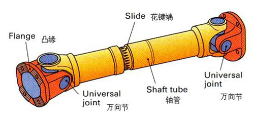 汽車傳動軸是由軸管、伸縮套和萬向節組成。伸縮套能自動調節變速器與驅動橋之間距離的變化。萬向節是保證變速器輸出軸與驅動橋輸入軸兩軸線夾角的變化,并實現兩軸的等角速傳動。它是一個高轉速、少支承的旋轉體,因此它的動平衡是至關重要的。一般傳動軸在出廠前都要進行動平衡試驗,并在平衡機上進行了調整。對前置引擎后輪驅動的車來說是把變速器的轉動傳到主減速器的軸,它可以是好幾節的,節與節之間可以由萬向節連接。